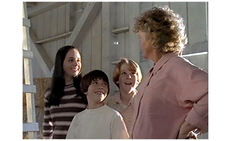 この先が、観ていて理解できない部分。ブーンに、「あんたさんの写真、残念でしたな。あの子に 戻してやる術(すべ)が、全然ないなんて」と言われた祖父は、恐らくだが、キャットから譲り受けた紙箱の中に入っていたアルミ製のフィルム缶のことを思い出したとしか思えない。そして、その中に、ジャーニーの古い写真があれば、ジャーニーにとっていい思い出になると考えたのだろう。しかし、それなら、フィルムをいつものように町の写真屋に持っていって現像してもらえば済むことだ。なのに、祖父は、何度も町と往復して大量の機材を買い込み、納屋に運んでいる。ある日、大箱1個と、小箱2個を抱えた祖父が車から降りた時、キャットが 「何してるのかしら?」と言うと、祖母は 「確かめてみましょ」と受ける。そして、祖父が 納屋の中に入って行くと(1枚目の写真)、クーパーも一緒に4人で後を追って納屋に向かう(2枚目の写真)。祖父が一番奥の部屋に入ろうとする直前、祖母は、「マーカス、私の愛しい人、何やってるの?」と声をかける。祖父は 「べたべたした言葉で、わしに話しかけるな!」と怒鳴るように言うと、ドアをバタンと閉める。「スパイしてやりましょ」(3枚目の写真)「見張られてると感じた方が、楽しいものよ」。しかし、ドアには鍵がかかっていて入れない。キャットが 「お祖父ちゃん?」と呼びかけると、「わしは、仕事で忙しいんだ!」と、これまた怒鳴るように答える。そこで、全員が引き揚げることに。