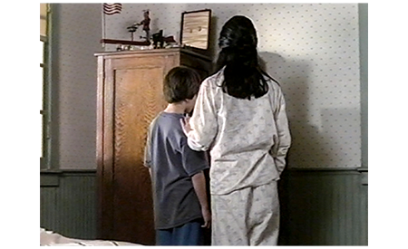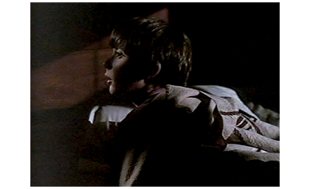ジャーニーは、母と祖父の激しい口論が気になり、寝室のドアを開けて心配そうに様子を窺っている(1枚目の写真)。そのあと、ジャーニーは窓辺に立つ(2枚目の写真)。すると、青年になったジャーニーの声で独白が流れる。「ママは、僕を、ジャーニーと名付けた。ジャーニー。僕にも、ママの “落ち着きのなさ” を求めたかったのかな? でも、ママは、結果を見る事なく、僕が11歳の時、家を出て行った。それは、春が どっとばかりに押し寄せて 山腹をシャクナゲで彩らせる前、夏風が 網戸をカタカタ震わせる蒸し暑く本をカビさせるよりは ずっと前のことだった」、この声とともに カメラがどんどん後ろに引いて行き、最後はジャーニーの家の全景になって終わる(3枚目の写真)。