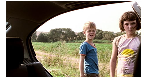 映画の冒頭、波打っている道路の脇を2人の姉弟が歩いている(1枚目の写真)〔なぜ波打っているのだろう? 電柱のある部分に波のピークがあるようなので、関連があるのかもしれない〕〔後ろに見える町からは、かなりの距離があるように見えるが、2人はずっと歩いてきたに違いない。しかし、どうして、こんなに長い距離を2人が歩かなくてはならないのか、説明がないので分からない〕。すると、弟の靴の紐が外れたため、立ち止まって直し始める〔後にも、似たようなシーンがある。結び方が下手なのか?〕。姉はどんどん先に行くが、それと同時に遥か後方から1台の白い乗用車が近づいてくる。最初の画面の位置から姉が消えた頃、まだ靴の紐を直している弟の少し先で車が停まる。立ち上がった弟は、「リア、ママが家まで乗せてくれる」と呼びかける。弟は、助手席側の後部座席に乗り、先まで行っていた姉も戻って来て、運転席側の後部座席に乗る。姉は、乗るとすぐに、継母のシルヴィアに文句を言う。「学校まで、迎えに来てくれると思ってた」〔それにしても、なぜ学校で待っておらずに、こんな長距離歩いたのだろう?〕。「でも。遅れちゃったの。買い物に行って、そこで食べましょ」。「一人で行けないの?」。「それは無理ね。服を選ぶには、あなたが その場にいないと」。「でも、行きたくない」。「リア、約束したじゃない」。「パパとね」。「議論はしたくない。シートベルト締めなさい」。あとからはっきりするが、リアはすごく我儘な娘。それに対し、弟のコンスタンチンは、乗った時から ちゃんとシートベルトをするし、継母のことを「ママ」と呼ぶような "良い子”(2枚目の写真)。リアは、「私、行かない」と言うと、いきなり、走行中にドアを開ける。シルヴィアは、「リア!」と怒鳴る〔そのあと、どちらがドアを閉めたのかは分からない〕。シルヴィアは 受動喫煙など無視して タバコを吸い始める。リアは、「タバコは止めたって、パパに言ったじゃない!」と、嘘を指摘する。それを聞いたシルヴィアは、窓だけ開け、黙って吸い続ける。再婚して突然子供が2人の母親になって以来 リアが嫌いになっていたシルヴィアは、「コンスタンチン、これ知ってる?」と言い、「アーユースリーピング」を歌い始め、途中からコンスタンチンが歌に加わる。弟がこんなに平和的なのに、姉は常に戦闘的。「あんたは、私たちのママじゃない。一緒に歌わなくていいのよ」。リアは前を向いたままだが、この言葉は、弟に言ったのだろうか? シルヴィアが歌うのを止めても、コンスタンチンは最後の節を歌う。そして、車は、ドイツとポーランドの国境に近づく(3枚目の写真)〔最初に後ろに見えていたのは、恐らくWeißwasserの町(人口2万)。ポーランド国境から7キロしか離れていない。しかし、国境を越えても、Weißwasserよりも大きな最初の町Zielona Góraまでは直線距離で国境から70キロもある〕。