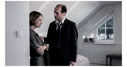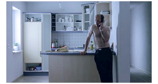 シルヴィアは、買い物をあきらめ、ドイツの家に戻る(1枚目の写真)。そして、夫にはタバコを止めたと嘘を付いたので、キッチンのレンジフードの真下でタバコを吸う。すると、玄関で音がしたので、「ジョセフ」と言うと、すぐに換気扇のスイッチを切り、タバコに水をかける。シルヴィアは、子供部屋にいる夫の所に行く。夫は、「子供たちは、まだ帰って来ないのか?」と尋ねる。「いいえ」。夫はシルヴィアにキスし、その瞬間、シルヴィアがタバコを吸っていたことに気付く。この、“何を考えているのか分からない女性” は、急に、「愛し合いたい」と言い出す。夫は、シルヴィアのキスの激しさに、「君が、またタバコを始めたことも気付かなかった」と、“ちゃんと分かってるぞ” と注意し、シルヴィアは、顔を離して、「歯を磨いてくるわ」と言う。そして、ベッドシーン(2枚目の写真)。シルヴィアのいう魔性の女。継子が2人、パスポートもなしに行方不明になっているというのに、それを誤魔化すためにセックスに走る。何という破廉恥な女性だろう。事が済んだ後、シルヴィアは、「ジョセフ、私…」と、何か言いかける。「何だ?」。シルヴィアは、白状しようとしたのかもしれないが、急に黙ってしまう。夫は、ズボンを履き、キッチンに何か飲みに行く。夫は、キッチンに置いてあった留守録のボタンを押す。「こちらグレルマン、コンスタンチンとリアの教師です。マティスさん、あなたの子供たちは、体育の授業に現われませんでした。次回は、事前に連絡して下さい」。それを聞いた夫は、「どうして欠席したんだろう?」と独り言を呟き、携帯を手に持つと、留守録に入っていたグレルマンの番号にかけてみる。「グレルマン先生、こちら、ジョセフ・マティス、リアの父です。あなたからの留守録を今聞きました」(3枚目の写真)。相手が何か言い… 「分かりません」。相手が何か言い… 「連絡します」。ここで。また独り言。「お前たち、どこにいるんだ?」。次に掛けたのは、どちらかの子の友人の母親。彼女も、2人を見てないと答えると、子供思いの父は、「探しに行く」と言い、服を着る。シルヴィア:「一緒に行きましょうか?」。夫:「電話があるかもしれないから、家にいて」。夫が、出かけてから数分して、急に思い立ったシルヴィアは、階段を駆け下りて、「ジョセフ」と言うが、ガレージが自動的に閉まるところだった。こうして、嘘を白状する機会は、完全になくなった。