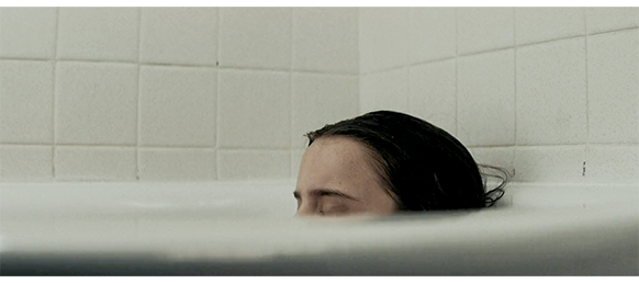 フィニーは、トイレに筒状に巻いたものが置いてあったことを思い出し、それを持って来て、窓に立てかける(1枚目の写真、矢印はケーブル)。そして、ケーブルを筒の中に入れていく。すると、てっぺんから出てきたケーブルが上手い具合に鉄の桟に絡みつき、そこからぶら下がることができるようになる。最初は、2本のケーブルをまとめて両手で持って登ろうとするが、彼の腕力では途中で落下してしまう。それを2回失敗した後、今度はケーブルの両端を結ぶことを思いつく。そうすれば、より高い所に足場ができる。フィニーは、そこに足を掛けると、今度は、楽に窓の鉄格子に手が届く。そして、格子を両腕でつかみ力を入れる(2枚目の写真)。すると、格子が外れて、格子ごと落下する。フィニーは、悔しそうに窓を見上げる(3枚目の写真、矢印は鉄格子)。その夜、グウェンは、父に、彼が嫌っている夢の話をする。その時、父が話すのが、母の才能と自殺の話。しかし、グウェンは、「もし、お兄ちゃんを見つけ出す役に立つんだったら?」と言い、父は、グウェンを車に乗せて、夜の町をゆっくりと走り、グウェンが保健室の夢で見た家がないか探すが、この時は、成功しない。