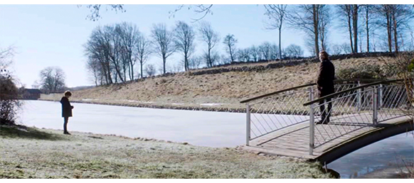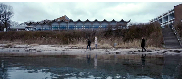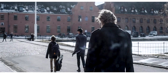 60歳代〔トーマス役のミカエル・パーシュブラントは撮影時50歳なので、老けた役〕の世界的に有名なロックミュージシャン、トーマス・ジェイコブのソロ・リサイタルが、満員の聴衆を始まろうとしている(1枚目の写真)〔司会者が英語なので、アメリカ〕。場面はすぐに替わり、広大なエアポートの柵のすぐ横を走る車の後部座席にトーマスが座っている。窓からは海が見える。横に座っている女性が、スマホで誰かと話している。「はい、私たちは今 着きました」と報告している〔赤茶色は英語〕。電話が終わると、女性は、「これから家まで行き、少し休んで、2時にまた出かけます」とトーマスに伝える。そして、「デンマークに戻りましたね」と付け加える(2枚目の写真)〔今いる場所が、コペンハーゲンだと分かる〕。車は雪の積もった田舎道を走り、凍った池の前に建つ煉瓦の館の前に着く(3枚目の写真、ミュージシャンなので、別便で届けられた楽器も着いている)。映画の多くの場面は、この館の内外でロケ撮影されている。フュン島にあるHolstenshuusという館だ(4枚目の写真)〔1910年の大火後に再建/オーデンセの南約30キロ〕。トーマスが玄関から階段を上がっていくと、フィリピン人のハウスキーパーがたどたどしい大声で、「Tak〔ありがとう〕」と言って服を指さすので、コートを脱いで渡す。「居間とピアノ、そこ」「キッチン、そこ」。そして、部屋のドアを開け、「あなたの部屋、ここ」と言うと、さっさといなくなる。大きな館を借り切った割には、狭い部屋だ」。そこに、さきほどの女性(マネージャー)が来ると、「あなたには、お城とスタジオがあり、モリー(プロデューサー)、運転手、ハウスキーパーのピンポンがいます。TVショーは2時からで、30分あります」と教える。