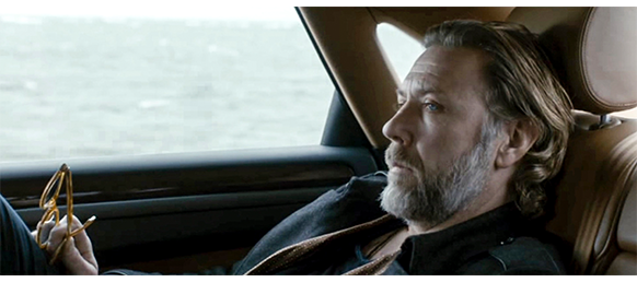館に戻ったトーマスと、マネージャーの重要なシーン。マネージャーは、レコーディングの延長を、「春頃になったら再開しましょう。あなたが立ち直り次第」と提案する。しかし、トーマスは 「延期はしない」と反対。「延期がベストだと思うわ」。「君は、私のマネージャーだ。言う通りにしろ」。「私は、以前、あなたを立ち直らせました」。「何が言いたい? 立ち直らせた? いったい何の話だ。君は私のマネージャー。単なるマネージャーだ」(1枚目の写真)。「あなたのマネージャーとして、録音を延期します」。「なら、君は、私のマネージャーじゃない。いいな、君は、今日限りクビだ。クビだ! 出ていけ!」。「ええ。じゃあ 明日 また雇って。いつもこの繰り返し。私は12年間 あなたをカバーしてきた、99年に立ち直らせてからずっと」。「君がやっただと? ホントか? くたばれ」。「私は、あなたをAAミーティング〔飲酒者の体験談を通して立ち直らせる場〕やNAミーティング〔薬物依存症の体験談を通して立ち直らせる場〕に連れて行き、奥さんにも嘘を付き、失恋したガールフレンドを慰めた。呪われた下着まで買った。だから、あなたが不適切な状態になった場合、私にはレコーディングのスケジュールを変更する権利があります」。「とっとと消える権利ならあるぞ! このレズのクソ女!! 出てけ!!」。マネージャーが、「ホント、真っ逆さまね」と笑顔で言うと、トーマスが頬を引っ叩く(2枚目の写真、矢印)。2人はじっと見合い、トーマスが 「出てけ」と言うと、マネージャーは無言で出て行く。その姿をノアに見られたことに気付いたトーマスは、マネージャーが服を畳んで出て行く用意をしている部屋を訪れ、「ノアは、行かないと。寄宿学校だ。電話してくれるか?」と言う。返事はない。「ケイト、何が望みだ? 謝罪か? じゃあしよう。悪かった。一線を越えてしまった」。それでも、無言。「なぜ、片付けてる? 出てっちゃダメだ。私のマネージャーじゃないか」。ようやく、マネージャーが口を開く。「私を叩いた」。「そうだ。叩いた。申し訳ない。本当に悪かった。私を助けて欲しい。君が必要だ」。「弁護士に電話します。寄宿学校にも。それだけは手配します。でも、それだけ」。それだけ言うと、マネージャーは、スーツケースを引いて玄関から出て行く(3枚目の写真)。