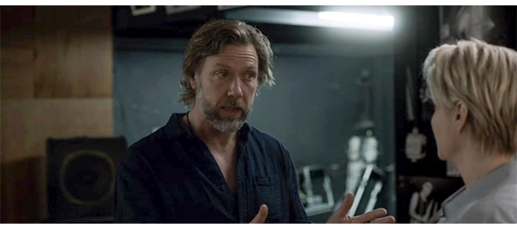 そして、TVショーに出演したトーマスに、司会者は、「巨大なスター、シンガーソングライターのトーマス・ジェイコブがロサンゼルスから到着しました。彼は、私たちのために歌ってくれます」と前置きを言い、番組が始まる。「あなたは お金持ちで、有名人で、クリーンに戻り〔麻薬をやめた〕、新曲のレコーディングのために戻って来られた」と トーマスに話し始める〔かなり失礼な言い方〕。トーマスは、「私のプロデューサーがデンマークにいるからだ。彼女なしでは何もできない。私のカオスから秩序を創造してくれる。歌や曲のアイディアは1万でも思いつくが、彼女がいなければ1曲もできない」と、モリーを最大限称賛する(1枚目の写真)。司会者は、さらに脱線して 「あなたは、酒、離婚、麻薬なしで、悲恋の歌を創り続けられますか?」と、許されないほど失礼なこと訊く。怒ったトーマスは、「我々は、麻薬、酒、離婚じゃなく、音楽について話すことに同意した。もうウンザリだ」と言うが、懲りない司会者は 「私は、予測不能になるんです」と、謝りもしない〔たかがTVの司会者のくせに、何様のつもりだろう?〕。呆れたトーマスは 「私もだ」とインタビューを打ち切り、ステージに行って歌う(2枚目の写真)。帰りの車の中で、マネージャーは 「彼を殴らなくて良かった」と言う。「年を取った」。「あなたの娘さんから、メッセージが入りました」〔スマホに〕。「えらく早いな。何が欲しいんだ?」。「あなたの娘なんだから、理由なんかなくても電話して構わないでしょ」。「それはどうかな」。「つまり…?」。「金だ」。