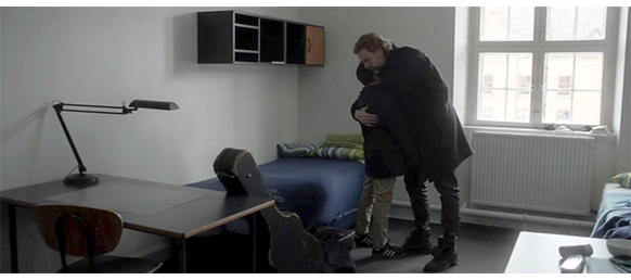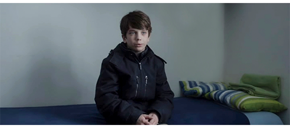 そして、ノアは、ピンポンと最後の別れをする。彼女の言葉は、「あなたは強い。食べること、忘れないで」だった。彼女に抱き締められてから、トーマスの車に乗り込む。そして、次のシーンでは、元マネージャーが選んだ寄宿学校に連れて行かれる(1枚目の写真)〔外観が映るのは、ここだけ〕。案内していく東洋系の事務員は、「君のクラスは授業中だから、部屋に荷物を置きに行こう。部屋は、アスムンド君と共有で、これからは 君も彼と一緒に授業に行くんだ。彼、君に会うのを楽しみにしてるぞ」と言いながら、連れていったのは、狭くて、ベッドと机と、壁に付いた小さな棚しかない、殺風景な部屋。祖父と孫は、2つのベッドの間で見合う。トーマスは、「モリーが電話する」と言うと、左手をコートのポケットに入れたまま、右手でノアを抱く(2枚目の写真)。ノアは、すぐベッドに腰かける。トーマスは、しばらく部屋を見ていて、アスムンドの片付けられていないベッドに腰かける。そして、最初の言葉が、何と 「これはひどい。これじゃダメだ。うまくいかん。ひどいな、ノア」だった。戸惑ったノアは、「何、話してるの?」と訊く(3枚目の写真)。