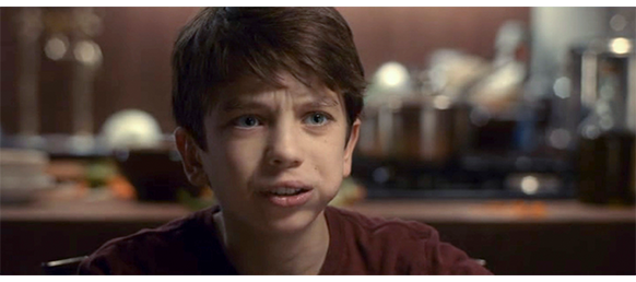 「私と来い。一緒に」。「何て?」。「私と来るんだ。こんなとこには、いられん」。あまりに異常な発言に、ノアは、「僕が知ってる最悪の大人だ。一人で城に住み、他人には無関心。悪口しか言わない。人を恐れてる」と、短い言葉を連ねて祖父を非難する(1枚目の写真)。「君が心配だ」。「ママがいなくて寂しい」。「もちろんだ」。「悪いママじゃなかった」。「そうだ」。「いいママだった」。「そうだ」。祖父はノアの前にしゃがむと(2枚目の写真)、「私と来てくれ」と頼む。「でも、ロサンゼルスに住んでるんでしょ?」。「私と一緒にロサンゼルスまで来てくれないかと頼んでる。ノア、私は君のお祖父ちゃんだ」。それを聞いたノアは、祖父の真心が分かり、目を閉じて、頭を祖父の額につける(3枚目の写真)。