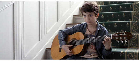 ロサンゼルスに住んでいるデンマーク出身のシンガーソングライターのトーマスが、マネージャーのケイトと共に、久し振りに故郷の地を踏む。実は、この設定自体が、どこかおかしい。❶トーマスは自分のことを 「私はずっとクリーンだった〔麻薬をやめた〕。6年間」と言う。❷ケイトはトーマスに 「私は12年間 あなたをカバーしてきた、99年に立ち直らせてから」と言う。❸トーマスは、プロデューサーのモリーのことを、「彼女なしでは何もできない。私のカオスから秩序を創造してくれる。歌や曲のアイディアは1万でも思いつくが、彼女がいなければ1曲もできない」と絶賛する。この3つは、それぞれ矛盾を含んでいる。❶と❷では、6年の開きがある。トーマスは、6年前から麻薬をやめたのなら、それまでは麻薬中毒だったことになる。12年間に立ち直らせたとは、どういう意味なのか? ❸デンマークにいるモリーがいなければ、「1曲もできない」のなら、始終デンマークにいないとおかしいのに、ロサンゼルスに住み、如何にも久しぶりにデンマークを訪れたという設定は変なのでは? 彼は、デンマークにアパートすら持っておらず、今回の介在は、大きな館を借り切って滞在するが、言葉尻から、そこが初めての滞在先だと分かる。始終来ているのなら、決まった場所があっていいはず。トーマスには11歳の孫ノアがいるが、会ったのは初めてではないにしろ、実に久し振りといった雰囲気だが、なぜそんなに疎遠なのか? 以上のように、受け入れ難い問題点が山積しているのが、この映画の最大の欠点。それを甘受して、主としてノアの目線からストーリーを追うと、①母に連れられて館にいるトーマス(祖父)に会いに来て、そっけなくあしらわれる。②母が麻薬中毒で施設に入ることになり、母はトーマスの都合など無視してノアをトーマスに預けて去る。③トーマスは、ノアが邪魔なので、ギターでも弾いていろと言うが、あまりに下手なので弾き方を教える。④ノアの希望で母の療養施設に行ったトーマスは、娘のひどさに、ノアへの同情心が沸く。⑤母は施設から逃げ出してきてトーマスに諫められる。⑥ノアのギターは上達する。⑦ノアの腕に塗るクリームを取りに、母のマンションに行くと、そこに母の死体が横たわっていた。それを見たノアは虚脱状態になり、トーマスは自己嫌悪に陥る。⑧ノアの母の寂しい葬儀。⑨トーマスは 娘を死なせたことで心が乱れ 曲作りができなくなる。⑩12年間トーマスを支えてきたマネージャーは、トーマスに数ヶ月の休養を命じ、トーマスと大喧嘩になり、生まれて初めて頬を叩かれ、頭に来て去って行く。⑪トーマスは、ノアを全寮制の学校に放り込んで 束縛から逃れようとして、ノアから嫌われる。⑫しかし、ノアと一緒に学校の寮の部屋まで行ったトーマスは、そのあまりの無機質さに驚き、ノアをロサンゼルスに連れて行き、一緒に住むことにする。ノアは、トーマスが麻薬中毒になっている間、ずっと無視してきた娘(ノアの母)の代わりに、トーマスにとっての「愛する人」となり、母を失ったノアにとっては、祖父トーマスが「愛する人」となる。