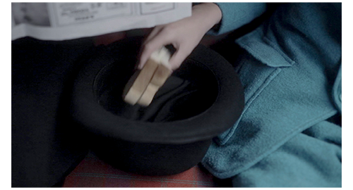 汽車の中は、3×3の対面座席の定番個室だが、新聞を広げた非常識な紳士が、「2人半」分の空間を占領し、ロアルドは窓際に逃げている(1枚目の写真)。母は、その状況を変えようと、ロアルドに、「ゲームをしましょ」と呼びかける。「いいよ。どんなゲーム?」。「かくれんぼ」。「ちょっと、やりにくいね」。「じゃあ、鬼ごっこ」。「それも、やりにくいね」。「確かに、やりにくいわね」。「アイスパイがいい」(2枚目の写真)〔例えば、スパイ役が 室内にある “イス(chair)” を選んだら、“C” で始まると宣言し、イスと言い当てた人が勝つ〕。たった、これだけの会話をしただけなのに、平気で空間を占領していた男は、「いいかね? 私は新聞を読んでるんだ。静かにしてもらえないかな」と、ずけずけと文句を言う。母は、バカ丁寧に謝った後、声の大きさを落とさず、「私たち、ネズミのように静かになりましょうね」と言い、「サンドイッチ、欲しい?」と訊く。「お腹空いてない」。「空いてるわよ」。母は、そう言ってから、手に持ったサンドイッチを しきりと動かす。その意味が分かったロアルドは、サンドイッチを受け取ると、紳士の帽子(ボーラーハット)の中に入れる(3枚目の写真)。そして、2人で笑い出す。それで、我慢の限界を超えた紳士は、立ち上がると、サンドイッチ入りの帽子を被り、個室を出て行く。邪魔者がいなくなると、2人は大笑い。