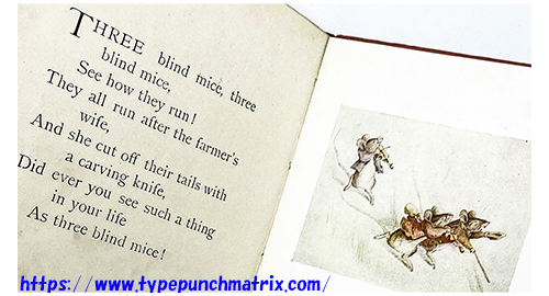 口うるさいアンは、マザーグースの『目の見えない三匹のネズミ』に付けられたポターの絵に、子供には悲し過ぎるからとクレームを付ける(1枚目の写真)。ポターが 「童謡よ」と言っても、反対する。因みに、『目の見えない三匹のネズミ』の歌詞(中川李枝子訳/一部漢字化)は、「三匹のネズミ 三匹のネズミ、目は見えないが、ほら走る。あれまあ、百姓のおばさんを追い回す。おばさん 包丁を振り上げて、三匹のネズミのしっぽを、ちょん! 見たことないでしょ、このような 目の見えない三匹のネズミ!」〔映画の副題の「知りたがり屋のネズミのしっぽ」の “しっぽ” とは、このこと〕。この『目の見えない三匹のネズミ』は、1922年にウォーン社から出版された『セシリ・パセリのわらべうた(Cecily Parsley's Nursery Rhymes)』の中に 収録されている(2枚目の写真)。ポターは、話の途中で、窓の外を子供が走る姿を、悪くなった目でぼんやりと見て(3枚目の写真、矢印)、気が気でなくなり、アンの話など耳に入らなくなる。アンは、「これでは、就寝時のおとぎ話には向きませんわ。子供たちに悪夢を見させたくないでしょ?」〔先の②に書いたが、これが、会社の再建に最大の功績のあった人に対する、一介の社員の言葉か?〕。「何言ってるの?」。「ウォーン社は、私たちで、もう少し恐ろしくないように変えられるのではないかと期待して、私を来させたのです」。「私たち?」。「あなたと私で」。アンは、勝手にポターの机に座り込んで、自分が共同執筆者のように振る舞う(4枚目写真)〔先の③に書いたが、当時、人種差別の激しかった時代に、混血の黒人女性が、こんな行動に出ることが可能だとは、信じられない〕。