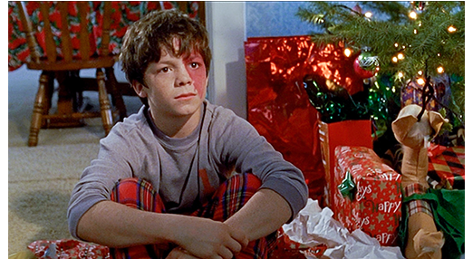 クリスマス。ジェイコブは母からプレゼント(iPod)を渡されてニコニコ顔(1枚目の写真)。父は、ソファに寝そべって何となく元気がない〔このシーン、僅か12秒〕。画面はレナードの家のクリスマスに切り替わる(2枚目の写真)。デブチン一家だけに、集った大家族も全員過食症だ。この映像はレナードの視点からで、カメラが切り替わると、こんなご馳走の前で、リンゴを齧るレナードが映る。そして、再びジェイコブ。母が、「もう一つプレゼントがあるのよ」と言い出す。父は、「もっと後にするんじゃなかったのか」と退(ひ)いている。しかし、2つ目のプレゼントだと思ったジェイコブは、「今すぐだよ!」と催促する。母は、「お父さんと私は、養子について何年も相談してきたの。そして、赤ちゃんを養子にすることに決めたのよ」と嬉しそうに話す。それを聞いたジェイコブから笑顔が消える(3枚目の写真)〔いったい、これのどこが クリスマスに相応しいプレゼントなのだろう? ジェイコブにはショックなだけだ〕。