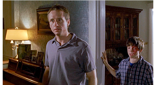 そして、学校が始まる〔9月の第一月曜日/新学期で、新学年になるが、メイリーの所属していた学内オーケストラの担当教師が、「夏中誰も練習してこなかったのか」と訊くので、学校は変わっていないことが分かる。ジェイコブは夏休みに12歳になったので、前年度は11歳。アメリカでは、5-3-4の地域でも6-2-4の地域でも、11歳は5年生。ジェイコブは12歳になっても同じ学校ということは、ここは6-2-4の地域で、3人はまだ小学校にいることになる〕。学校から戻ったジェイコブは〔同じ柄のシャツを着ている〕、父と母が激しく言い争っているところにぶつかる。それは、ジェフとケニーの処分決定に対する母の憤りだった。「あなたが、私が言ったようにして裁判にも出てれば、こんなことには絶対ならなかった!」。「それは 辛すぎるって止めたじゃないか! 君も同意したろ!」。「あなたが、同意したのよ!」。ここで、ジェイコブが、「何があったの、ママ?」と尋ねる(1枚目の写真)。父は、「ルディを殺した子供たちは司法取引をした。1年間の少年刑務所と、5年間の保護観察だ」と説明する。母は、「1年よ。それがルディの命の価値なの」と言うと(2枚目の写真)、再び逆上する。「なんで、あなたはそんなに平気でいられるのよ! 息子は殺されたのよ!」。「事故だったんだ」。「それなら、許されるの?」〔この父親は、葬儀に日に森を売ったり、『事故だった』と相手を擁護するなど態度が不明瞭。母の方が過激だが、心情は良く分かる/他人の地所内にあるツリーハウスを勝手に破壊しようとしただけで少年刑務所送り相当だと思うし、中に待機している可能性が高いのに、それを確かめずに放火した罪はさらに重い。特に、実際に火を点けたジェフは、放火後すぐに逃走しており、より罪が重くないのは不自然〕。