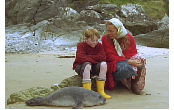 映画の時代設定は1963年。アイルランド本土の孤児院からスタートする。継ぎ当てだらけの制服を着た小さくてひ弱な院生が、鮮やかな服を着た女性に養子候補として引き取られ、小さな島に連れられて行く。その服装と同じように明るい養母と違い、実直な漁師の養父は、おどおどして口もきけないトマスを一目見て落胆する。自分たち夫婦が長年期待しても作れなかった実子の代わりとしては、あまりにも不満足なのだ。トマスは、養母とは打ち解け「ママ」と呼ぶようになるが、養父は「あの人」としか呼べない。養母は、アザラシが、死んだ人間との伝言の仲介をするという地元伝承をトマスに教え、さらに虹の美しさについても語る。こうした、ある意味では幸福なトマスの日常は、養母の急死と、養子縁組に養父がまだ承諾署名をしていないという現実を受け、急激に変化していく。