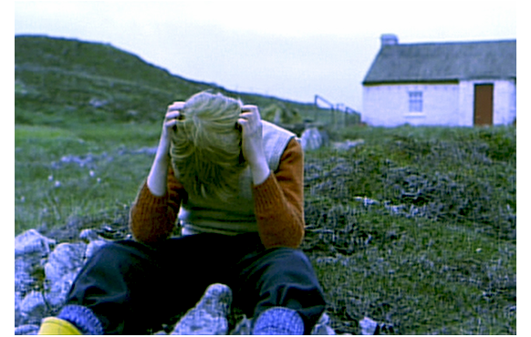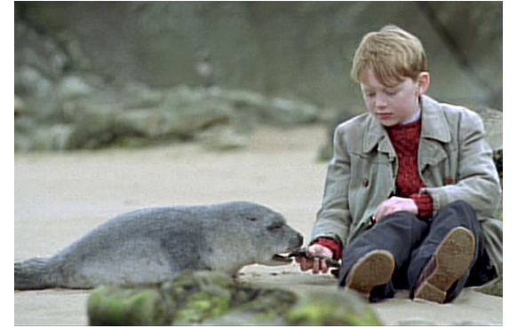 明くる日、朝起きたトマスは窓から虹を見て大興奮。そのことを言おうとして、ひどい吃りであることが分かってしまう。トマスが外へ出て行った後で、「口もきけない子だなんて、言わなかったぞ」。アレックは呆れ果てている。だからトマスも近寄らない。一緒に舟で漁に行かせようとするが、隠れて出てこない。モイアは、気を楽にしてやろうと、海岸まで一緒に降りていき、アザラシに会わせる。そして、「アザラシは、死者の霊を見つけ、言いたいことを伝えてくれる」と島の伝承を話してくれる。トマスは、おばあちゃんへの伝言をアザラシに託す。その後で、「何て言ったか、知りたい?」。「言いたいなら」。「僕、ここが好き」。トマスが、少し心を開いた瞬間だ。