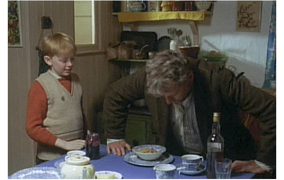 その夜、ベッドに入っていると、夫婦の会話が聞こえてくる。モイア:「失望したんでしょ?」。アレック:「ずばりな」。「ちょっと見ただけで、お見限りなのね」。「男らしい子を選んで来ると期待してたからな。あんなチビを選ぶとは。最初の嵐で吹き飛ばされちまう。もっと頑丈なの、いたんだろ?」。「ええ。でも、私はトマスを選んだ」。ドアを少し開けて悲しそうに聴いているトマス。