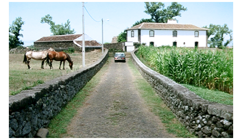 映画では、このあと、フルナス湖の全景が映り、さらに湖畔の瀟洒な館が映る(1枚目の写真)〔サマーハウスは平坦な土地に建っていた。ところが、フルナス湖はカルデラ湖なので、周辺が山に囲まれている。地形が全然異なるので、本当なら “散歩” ぐらいで近づけるような場所ではない〕。この館は、2枚目の写真の右側の建物(Casa da Lagoa)。湖畔に建っているように見えるが、湖との間の平地に庭園が造られていて、その様子は3枚目の写真でよく分かる。2枚目と3枚目の写真は、サンミゲル島の宿泊施設紹介サイトにあったもの。
