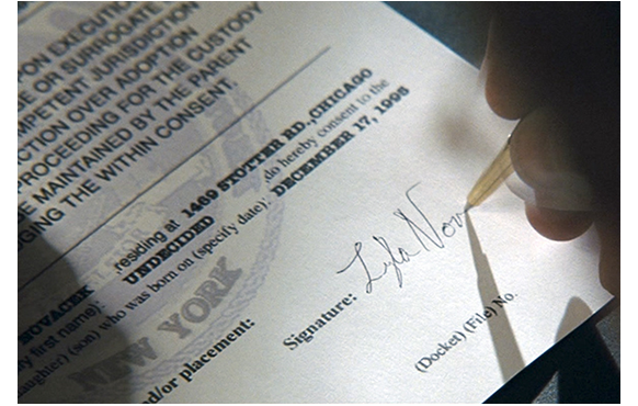 一方、ライラの父は、死の床にあった。そこで娘に意外な事実を打ち明ける。11年前の赤ん坊は男の子だったが、演奏家に乳児がいると不都合だから、親である娘の同意がないまま(署名を父がした)、養子縁組の手続きをしたと。「すまない」とわびる父。「どこにいるの?」と声を荒げるライラ。だが、父は署名してからフォローしてなかったので、「知らない」としか言いようがなかった。シカゴからニューヨークに飛んで行くが、夕方なので、児童局で門前払い。明くる日、児童局の入口で。(勝手に子供を捨てておいて)「なぜ今さら?」と訊く係官に対し、「11年と2ヶ月と15日経って初めて、息子が生きてたって分かったの」と言う。これでは、至急対応してあげないといけない。その係官は、偶然、孤児院でエヴァンと面談した人だった。資料室で、エヴァンの母だと知り驚く係官。しかし、エヴァンは孤児院を脱走して行方不明なのだ。