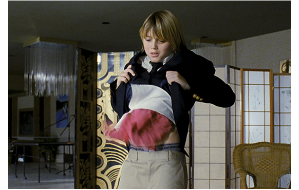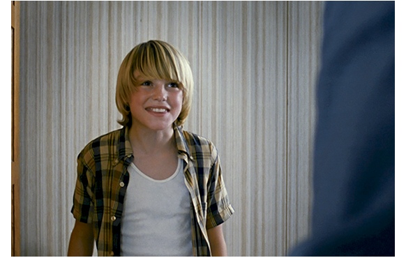 ベッドを飛び起きると、ボビーはスケボーをやりに外へ。家の前の道路で、近所の子供たちと遊んでいる。そこに1台の車がさしかかり、ボビーは撥ね飛ばされる。病院に運ばれるが、足を折っただけの軽症で済んだ。運転をしていたのは地元の大手不動産会社の社長。母と一緒に病院へお見舞いに。部屋に入るなり、ボビーに駆け寄る母。心から大好きなのがよく分かる。母の心配をよそに、ボビーは「もっと大きな車にぶつからないと」とケロり。その時の表情がいい。看護婦さんもメロメロだ。「悪かった。見えなかったんだ」と謝る社長に、「大きくへこんだでしょ」。そして、社長の名前がケントだと分かると、「クラーク・ケント、スーパーマン?」とおどけてみせる。しかし、母と2人きりになると、「行かないで」「疲れたちゃった」「愛してる」と言ったあとで、「ママ、パパは僕のせい?」と訊く。ここで、母が離婚したことが分かる。