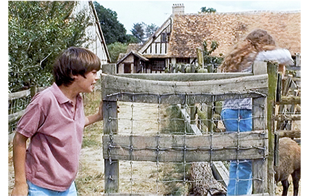 従兄はリザを農場に乗せて行く。そこから先は、アントワーヌとリザの2人だけ。アントワーヌは動物の囲いに案内する。最初のフェンスの中にはキジが20羽ほど入っている。アントワーヌは、狩猟のシーズンになったら自由にすると説明する。自由になってもハンターに撃たれるだけだ。次に行ったのがイノシシの囲い(1枚目の写真)。グレグワという名前のイノシシはアントワーヌのお気に入りで、コーラをガブ飲みするのが大好き。「撫ぜていい?」。「待って。その前に紹介しなきゃ」。アントワーヌはイノシシの横に立ち、「グレグワ、この子はリザ」と言い、リザに「幾つ?」と訊く。「10よ」。イノシシに「10歳だって」と教える。「パリに住んでるの?」。「ううん、モンレアル」〔そういえば、フランス系住民が圧倒的に多い都市なのに、なぜ日本では英語標記でモントリオールと書くのだろう?〕。「カナダ人?」。「そうよ」。リザは、柵の中の他のイノシシを見て、「いつか、撃たれるために出されるんでしょ」と悲しそうに言う。「それが当たり前なんだ」。「当たり前だと思うワケ?」。「そうさ。それが狩猟なんだ」。リザは戻りたいと言い出す。アントワーヌは家の方に戻る。その時、祖父が 地主のマダムと一緒の姿が見える。私は農業については知識ゼロなので、この表現に驚いた。マダムが “la propriètaire du domaine(地所の所有者)” であるのに対し、祖父は “s'occupe de la ferme(農場の世話係)”。これでは小作農になる。戦前の日本、あるいは、フランス革命を思い出させる言葉だが、2013年の論文(Desriers, M.: Un essais de synthèse statistique sur le foncier agricole en France. Une situation de plus en plus complexe dominée par le fermage”, Pour, no. 220, pp.77-88,2013)を見てびっくりした。フランスの小作農地は全面積の76.4%にも達すると書かれている! 次にアントワーヌの目に入ったのはクレマンス。「世界一の強い女性なんだ。シュワルツェネッガー観たことあるだろ? 彼より強いんだ。誓ってもいい」(2枚目の写真)「一度もボディービルなんかしてないんだぞ」〔シュワちゃんに対する皮肉?〕。その時、従兄がトラクターで近づいて来て、アントワーヌに、「お父さんから電話があった。来られないって言ってた」と伝言する。これにはアントワーヌもがっかり。リザが心配して “Ça va?” と訊き、アントワーヌが “Ça va?” と答える。英語のOKに近いが、本当に便利な言葉だ。2人は森に向かって歩きながら話し合う。アントワーヌの話で重要な点は、父からもらった夜光双眼鏡を持っているということ。リザの話で重要な点は、さっきの女性クレアはリザの母親ではないということ。2人の前に野生の小鹿が現れる。映画の冒頭、アントワーヌと遊んでいた鹿だ。アントワーヌは森の中で罠にかかったキツネを見つけ、罠を外してやる(3枚目の写真)〔後で、獣医にところに持って行く〕。