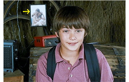 従兄がリザを送って行った後、アントワーヌはクレマンスからしつこくリザのことを言われる。「恋したの?」。「からかってる?」。「名前を言ってみて」。「話したじゃないか」。「もう一度」。そこで、アントワーヌが「リザ」と言うと、言い方が違ったので「やっぱり恋してる」と、はやし立てる。アントワーヌは、「そっちこそ、ムチャクチャ言って」と照れ隠しの反論(1枚目の写真)。その時、祖父が大声でクレマンスを呼ぶ。彼女が中に入ると、祖父が重い棚を動かそうと必死になっている。棚の上に置いた200フラン札がなくなったので、棚の後ろに落ちたと思ったのだ。クレマンスが簡単に棚を動かすが、そこにはなかった。ポケットにも財布にもなかったので、次に疑われたのはアントワーヌ。祖父に呼ばれたアントワーヌは、「200フラン札〔約3900円〕、見なかったか?」と訊かれる。そして、返事も待たずに、「白状して返したら、忘れてやる」と犯人扱い(2枚目の写真)。「何も盗ってないよ」。「ポケットを見せろ」。従兄が、「また盗んだのか?」と言ったので話がややこしくなる。「盗んだんじゃない、借りただけだ!」〔ビデオのこと〕。祖父は立ち上がると、「昔、わしが父から5フラン盗んだら、ベルトで叩かれた」と言い、自分のベルトを外そうとする。アントワーヌは「盗んでないったら!」と怒鳴ると、体罰を待たずにその場を立ち去る。祖父は、「3週間小遣いなしだぞ!」と後姿に向かって怒鳴る。証拠もなしに疑ってかかるとは、実に嫌な人間だ。その夜、アントワーヌはツリー・ハウスで一夜を過ごす。夜明け前になり、飼っているオウムがキーと鳴き、翼をバタつつかせる(3枚目の写真、矢印はオウムと翼)。