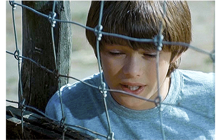 アントワーヌはビニール袋をかつぐと、桟橋の横から岸にあがる。しかし、ナイフで破いた穴から、先ほど取り出した帯付きの500フラン札が顔を覗かせている(1枚目の写真、矢印)。札束〔約100万円弱〕は、茂みの中を通過した時、地面に落ちてしまう。アントワーヌはお金をどこかに隠し、明るくなってから自転車で農場にやって来る。そして、イノシシの囲いまで行くと、グレグワを呼び寄せ、話しかける。「よく眠れたか? 僕はあんまり寝てない。泥棒してたから。そうなんだ、僕は泥棒さ。僕を見ろよ。お前がこれまで見た中で一番の金持ちだぞ」(2枚目の写真)「銀行強盗のお金なんだ。お前だったらどうする? 返すか? そうしたいんだけど、リザがいる。昨日会わせてやったろ。あの子の父さんがグルなんだ。もし刑務所に入れられたら… どうすりゃいいんだ、グレグワ。もし、このまま持ってたら? 何でも買えるぞ」。そして、最後に、「パパがここにいてくれたら…」。朝食の用意ができたのでキッチンに入った時、そこにはクレマンスしかいなかった。アントワーヌはお金のことを打ち明けようと、「話がある」と切り出す。しかし、クレマンスは昨日の祖父の200フランのことを白状するのかと思い、200フランを祖父に渡して万事解決したから〔どこかに落ちていたとでも言ったのか?〕、「後で返してね」と笑顔で話す。アントワーヌは、クレマンスにまで疑われたのかと憤慨してその場を立ち去る。後から入って来た従兄が、「銀器にご用心」と意地悪な冗談を言ったことも、それに輪をかけた。その日のランチは池の端で、リザの一家を招いてのものだったので、アントワーヌも顔を出す。アントワーヌはリザと一緒に座るが、目は、リザの父をずっと睨んでいる(3枚目の写真)。