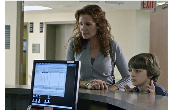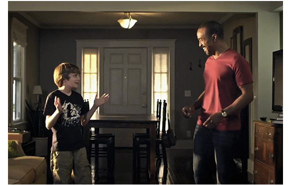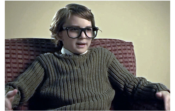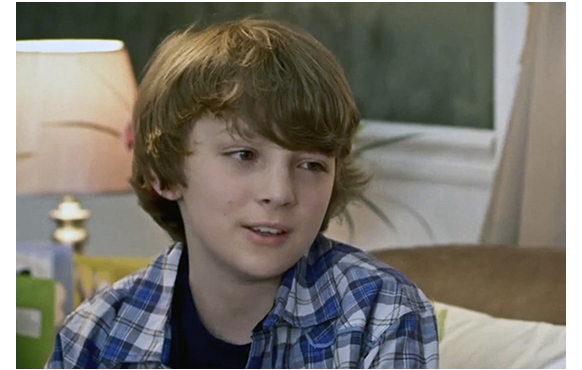 ところが、ルーカスが帰宅すると、母が嬉しそうに飛んで来る。「どうしたの?」。「こっちに来て、座ってちょうだい。あなたに、サプライズがあるのよ!」。「ニューヨークに行くぞ」。「なぜ?」。母が、「ちょっと待ってて」と言い、隠してあった派手でサイコ的な衣装とともに現れる。「それ、何なの?」。「ニューヨーク用よ。グッド・モーニング・USA〔有名なグッド・モーニング・アメリカのもじり〕用に、新調したのよ」。「ママ、ニューヨークには行きたくない」。「NBCに出演できるのよ!」。「インタビューは全部やったと思ってた。ニューヨークなんか行きたくない。行くもんか!」。「悪いんですけど、もう行くって返事しちゃったの。それに、これが最後よ」。呆れて、母の顔を見るルーカス。1つ前の写真と同じ子役とは思えないほど表情が違う(1枚目の写真)。そして、ニューヨークで。「子供によるセンセーショナルな爆発的ネットアクセス」のタイトルで紹介されたルーカス。ただでさえダサい衣装にうんざりしているところに、司会者のCarson Dale(Carson Dalyのもじりか?)から、「単刀直入にいこう。どうやってビデオに細工したんだい? すごくリアルだからね。君は史上最年少のP・T・バーナムだな」。バーナムは19世紀の有名な興行師(ホラ話とサーカス)。ルーカスがその名前を知っていたとは思えないが、言葉の前半の部分だけで頭に来ていたはず。それに追い討ちをかけたのが、女性キャスター。「11歳にして、学者や科学者を欺けたって、どんな気分がするものなの? でっちあげ以外の何ものでもないって、見抜けないなんて」(2枚目の写真)。ルーカスは、これで完全にキレた。「あれは… でっちあげ… じゃない」。「そうか、ところで、ルーカス。君のビデオは、1000万回以上ヒットしている。もし、ビデオが本物なら、何を捉えたんだと思ってる?」。質問には答えず、スタジオ内で談笑する両親を睨むように見るルーカス(3枚目の写真)。そして、何の断りもなしに席を立つと、スタジオから出て行ってしまう。