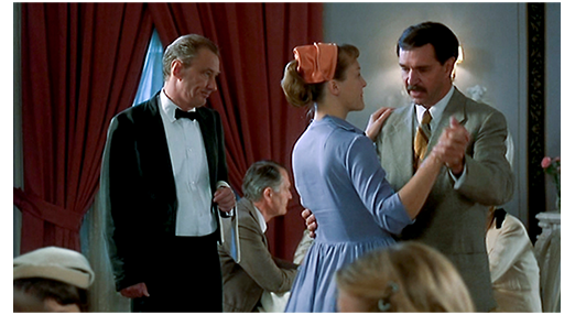 一方のレストラン。食事が済んだ後、ヨハンソンはスヴォンストロムにダンスを申し込む。スヴォンストロムは、周りを見て、「今夜はダンスの日じゃありませんわ」と言うが、ヨハンソンは、「なら、私達だけでやればいい」と、いつもの練習の成果を披露しようとする。それを見たスヴェンは、支配人を呼びつけ、「奴が恥をかくまえに、やめるよう言ってやれ。我々は、ここで静かに食事をとりたいんだ」と文句を言う。支配人は、ヨハンソンの横に行くと、「失礼します。今日は、“ダンスの夕べ” ではありません」と、やめるよう依頼する。「知ってるさ。だが、誰にも迷惑はかけていない」。「スヴェン様のご一行が、静かに食事をされたいと」。「スヴェンに言うんだな。他の方を見てるか、さっさと家に帰れと」(1枚目の写真)。それを聞いたスヴェンは頭にくる。しかし、本人に直接文句を言うだけの勇気はないので、ピアノを弾いているジャックの横に行き、「弾くのをやめろ。すぐにだ!」と言う。ジャックは、「失礼。分からない」と言い、弾き続ける。スヴェンは、「誰か、黒ん坊と話せる人は?」は聴き、返事がないと、ジャックに「我々はスウェーデン人だ」と言い、それでも演奏をやめないので、平手でピアノを叩く(2枚目の写真、矢印)。ジャックは演奏を止める。スヴェンは、「この国は我々のものだ。ここが嫌なら、ジャングルに帰れ」とジャックを侮辱した後、「その、死体愛好症の奴を、ここから追い出せ。じゃないと、私が自分でやる」とヨハンソンを指差す。スヴォンストロムは、スヴェンにつかつかと寄って行くと、「何て、恥知らずな!」と非難するが、スヴェンは、「食欲が完全に失せる前に、今すぐ、あの墓掘りを連れ出せ」と言う。ジャックは、譜面を集めてピアノの前から立ち退き、支配人の制止を振り切って出て行ってしまう。ヨハンソンは、スヴォンストロムに、「心配はいらない。すぐ死ぬと分かってると、人間は 時々 ああなるんだ」と慰める。「すぐ死ぬの?」。「棺桶を注文したんだ。肺癌で」。