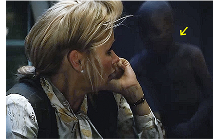クリーメンスの自宅では、長女のヴィニーが、新しくきたナニーに話しかけている。「なぜ、ナニーになったの?」。「子供が とっても好きなの。抱きしめたくなっちゃう。だって、子供は 悪巧みをしたり、嘘をついたりしないでしょ」。「自分で、つくればいいのに」。「うまくいかなくて」。「誰も、あんたに入れたくなかったんだ」。いよいよ本領発揮。「もし私が男だったら、あんたと一発やるくらいだったら、おちんちんチョン切って、汽車の下に投げちゃう」。「麻薬やってるの?」。「ホントのことを言っただけ。ほら、私 子供でしょ。嘘はつかないの」(1枚目の写真)。「よくも言ったわね。なんて、下品で、胸の悪くなる、忌まわしい子なの」。「あんたって、醜いわ。カンジダとヘルペスに複合感染したみたい。メイクを洗い落としたら、あごひげが見えるんじゃない?」。ナニーは、怒って自分の部屋に行き、ベッドに腰を下すと泣き出す。すると、ドアがバタンと閉まり、鍵がかかり、窓のシャッターが下がり、部屋が真っ暗になる。ナニーは、携帯で2人の父親を呼び出す。その時、後ろから呼ぶ声がして(2枚目の写真、矢印は真っ黒なボディ・スーツを着た弟のテオ)、ナニーをスタンガンで襲う。部屋から叫び声が聞こえる(父親にも聞こえる)。にんまりと笑うヴィニー。ナニーの悲鳴を聞いて駆けつけた父は、荷物を持って出て行くナニーと出会う。彼女は、「あなたの子供は、サイコパスよ」と言い、父がどう慰留しても去って行った。それを、見て2人はほくそえむ(3枚目の写真)。
