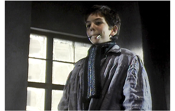 映画の最初16分は、大人になってからのハインリヒ。時代は19世紀。場所は謝肉祭の仮装で賑わうミュンヘン。集まっているのはかなり背徳的なグループだ。親友のリュスが、自身の婚約者を侮辱的に扱っているのを見たハインリヒは、義憤からリュスに決闘を申し込む。それを受諾したリュスが、「お前は死を知っているのか?」と問いかけ、ハインリヒが「死? 物心付いた時から知っている」と言い(写真)、少年時代の回想シーンに入っていく。