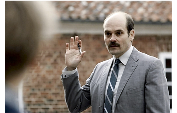 リリアンが去って1年半が過ぎた1969年7月20日。アポロ11号が月面に着陸した日だ。映画冒頭のケネディ発表がここで生きてくる。ラジオで、11号の予想着陸時間のニュースを聞きながら、新しい視学官を乗せた車が孤児院に向かって走っている。視学官がグッビャの資料を見ながら、「素晴らしいな。経理は完璧だし苦情はゼロだ」と言う。そして、助手に訊く。「彼は、何年 院長を?」。「ヘック氏は 1949年からです。1962年からは、校長会の会長です。もうすぐ騎士勲章を受けるはずです」。「立派だな。当然だろう」〔あんな最低の院長が受勲されるなんて、制度が正常に機能していない証しだ〕。旧弊な助手が「この訪問は歓迎されないでしょう。未通告ですから」と言うと、「もし報告書通りなら、ただの訪問で終わる」と答える。これまでの馴れ合いではなく、やっと正常な「監査」が実施されることになる。その頃、孤児院では、院長に届いた受勲通知を見て、ゴマすりの秘書とレッスンが褒め称えている。その時、異変が知らされる。視学官は、院長に会わず、いきなり視察を始めていたのだ。「47名の少年に、トイレ2つだけ、洗面台が8つで温水もないだと?」。対応したアクスル〔ずっと前に退院していた〕が、「そのことは、院長におっしゃって下さい」と責任回避。そこに、急を聞いた院長が駆けつける。「いったいどうなってる?」。「今日は、私はハートマン、新任の視学官、目下監査中です」。「連絡を受けていません。他の日にしていただきたい」。ハートマンも負けてはいない。「驚かれるのは分かりますが、視察は抜き打ちでするものですよ」。「しかし、連絡なして来られたのでは我々の最高の状態をご覧いただけませんよ。日を変えて下さい」。「グッビャでの最初の視察報告が、『監査を拒絶された』という文言にはしたくはないですな」(1枚目の写真)。ハートマン氏、なかなかやり手だ。院長も無理に笑顔を作って、折れる。「建物の視察からどうぞ、それから昼食を用意します」。しかし、この誘いもハートマンは受け付けない。「私は、まず、少年たちと話したいですな」。「子供たちと?」。「それが最も重要でしょ」。「まだシャワーを浴びていません。屋外作業の最中ですから」。「それでしたら、休憩がとれて喜ぶでしょう」。彼は、常に、院長の一歩先を行く。そして、少年たちが急きょ集められる。身なりは汚れたまま、傷も化粧で誤魔化していない。ハートマンは一番小さくて疲れているエルマに、「名前は?」と訊き、「大丈夫かね?」と尋ねる(2枚目の写真)。エルマは頷いただけ。トパーには、「このケガはどうしたのかね?」と訊く。レッスンが「ロフトから落ちたんです」と口を出すが、ハートマンは無視して、もう一度同じことを訊く。「先生が言った通りです」。ハートマンはレッスンに「炎症を起こしている。手当てが必要だ」と注意する。次に訊かれたのがエリック。「額の腫れはどうしたんだね?」。「落ちたんです。院長先生が助けてくれました」(3枚目の写真)「先生は僕たちのために、いろいろしてくれます」。こうした態度は、苛酷な環境にあっては致し方ないと思うが、見ていてエリックが好きになれない理由でもある。ハートマンは、お追従的な発言にムッとして、少年たち全員に話しかける。「私の仕事は、君たちが申し分なくしているか確かめることだ。何でもいい、内緒で相談したいことがある人は、手を挙げなさい」(4枚目の写真)「何か困ったことがあれば、どんなことでも話しなさい。必ず助けてあげよう」。しかし、誰も手を挙げようとはしない。少年たちにしてみれば、今まで、教師には騙され続けてきたので、「新顔の視学官も、どうせ騙すか口だけで何もしないさ」と思って当然だろう。それに、院長をはじめ全教師が見ている前で、手を挙げさせるという方法自体に無理がある。教会の懺悔室のように、1対1の隔離された環境なら、話したかもしれないが。