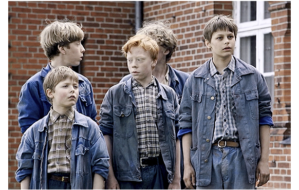 エルマは、顔見知りの少年たちに別れを告げる(1枚目の写真)。「これが、エルマを見た最後だった」。エルマは、トリューをじっと見て微笑むと、固く握手を交わす。「そして、その時初めて悟った。グッビャでは何も変えられないというのは僕の間違いだったと〔Og for første gang forstod jeg at der også ville være noget ved Gudbjerg, jeg ville savne.〕」。非常に強いメッセージだ。エルマが去った後、ハートマンが「内緒で相談したいことがある人は、いるかね?」と訊くと、「間違い」に気付いたトリューが、おずおずと手を挙げる(2枚目の写真)。それを見て、微笑むハートマン。それに勇気づけられて他の少年も、次々と手を挙げていく(3枚目の写真)。この映画で最も感動的なシーンだ。言葉を返せば、このシーンがなければ、映画は、ただの孤児院での虐待物語に終わってしまっていた。この改革への明るい希望の光が、この映画の陰惨さを吹く飛ばし、すがすがしい作品へと昇華させる。