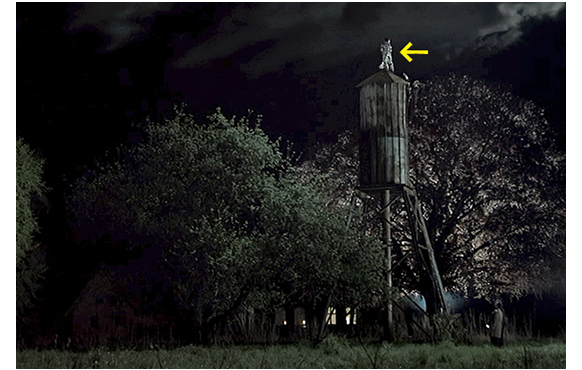 そこに到着したのが、ハートマンとリリアン(1枚目の写真)。院長は、リリアンに向かって、「あんたは部外者だ。車に戻ってとっとと消えろ」と暴言を吐くが、リリアンは「私たちは、エルマと話すまで帰りません」と宣言する。院長は、ハートマンに、「何を聞かれたか知りませんが、エルマならベッドで眠っていますよ」と平然と嘘をつく。その時、給水塔のてっぺんまで登り詰めたエルマに対し、追っていったレッスンが「エルマ、こっちへ来い!」と叫ぶ声が聞こえてくる。最高にバツの悪い瞬間だ。院長が、嘘付きで、隠蔽しか考えない人間だということが視学官に知られてしまった。ハートマンとリリアンは声のした方に走っていく。エルマは給水タンクのてっぺんに立っていた(2枚目の写真)。避雷針を握っただけの、極めて不安定な状態だ。エルマは、高く登った満月をじっと見ると(3枚目の写真)、宇宙飛行士として死のうと空に向かって飛び出す(4枚目の写真)。