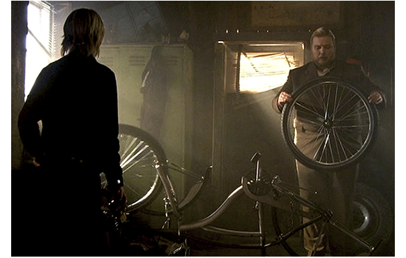 目の前には偶然自動車の解体工場があった。ケルは、パンクを直してもらえないかと中に入っていく。ドアを叩くと、太ったおじさんのエルフが顔を出した。「大急ぎで入れ。外は危険でいっぱいだ」と言う。「パンクしたタイヤ直せる?」と訊くと、「悪いが、俺にはタイヤの修理なんて絶対に無理だ」とつれない返事。「お願い、重大事なんだ」と頼むと、「俺にはできない。俺が触ると、何でもバラバラになる」。「それを、信じろって?」。「ああ、ほんとなんだ」。「最低の言い訳だ」。そして、「自転車が直らなかったら、妹がひどい目に遭う」と、すがる。エルフは「これまでで、最も馬鹿げた説明だな」と言いつつ、根負けして「忘れるな! 君が頼んだんだぞ」と言い、パンクした車輪をそっと外す。すると、他の部分も次々と外れ、自転車はバラバラに。エルフの話は本当だった。唖然として言葉もないケル。その後、カバーで隠してあった自動車を発見、エルフが食べろと勧めるオートミールを作っている隙に、エンジンをかけて車を外に出すことに成功。