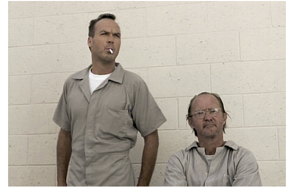 州知事の肝いりで交渉は成立。知事にとっても、マスコミ受けのする内容なので、フランク刑事がTVの前で謝意を示すことで、移植への一連のプロセスを承諾したのだ。マッケイブには、さっそくタバコ1本とライターが与えられ、誓約書にサインを迫られる。看守が去ると、プロセスが始まったと知り、さっそく靴ヒモを外し、親指に縛り付けて脱臼させる(理由は後述)。脱獄への第一歩をすぐ始めるところが周到で凄い。場面はすぐ、マットの病室に変わる。マットは父にマッケイブのことを知りたがる。「なぜ、刑務所に入れられたの? 人を殺したの?」。「そうだ」(1枚目の写真)。「その人が、僕の体に入って、僕の一部になるんだ…」(2枚目の写真)。表情が切ない。「断じて違う。あいつにはならん。老人から献血を受けたら、お前も老人になるか? 選択の余地があれば、あいつなんか選ばない」。「分かってる」(3枚目の写真)。