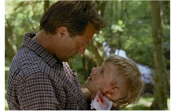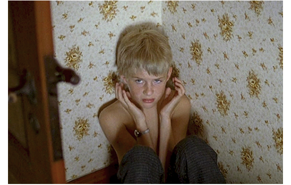 夏休み。フリッツと話していた父の様子が急におかしくなった。いつもの精神疾患の再発だ。母が、職場である学校から駆けつける。そして、泣いているフリッツに「今は、辛いでしょうけど、きっと良くなるわ」「それまで、4人で頑張りましょう」と声をかける。そこからが映画のオープニング。主要キャストの名前が流れる間、フリッツが納屋のロープにぶら下がったまま無表情に揺れているシーンが映される。その無表情さの中に、心のショックの大きさが分かる。流れる歌は『路地の 暗い突き当たり(At the Dark End of the Street)』。ピッタリと合っている。