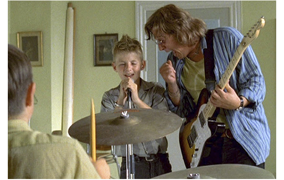 父は学校に抗議に行こうとするが、母は、「学校は私の職場よ。みんなに顔向けできないわ」と止める。さらに、「髪を切ってたら、こんなこと起きなかった」と髪も切ろうとする。しかし、「どうせ 起きたんだ。畜生! 僕の耳だぞ!」叫ぶ息子を見て、遂に学校へ。校長に謝罪を求めるも、逆に「自分の立場をわきまえなさい。息子さんをちゃんと躾けられないから、我々がしたのです」と諌められる始末。警察も学校の問題だと取り合ってくれない。そんな不幸な家に、スヴェール先生が見舞いに来てくれる。部屋の隅で、殻に閉じこもったいたフリッツを、自分の車に乗せ学校に連れて行き、髪を切ってやる。当時はまだモヒカン刈は存在しなかったので、その先駆的な髪型だ。生徒達には「ロバの髪」とからかわれるが。担当の音楽の時間になると、先生は生徒には楽器を渡し、フリッツに主役をふって、ロックを歌わせてやる。「♪おいらは、呑み助の敗残者」と嬉しそうに歌うフリッツ。先生は自分の家にも連れて行き、「どれでも、貸してあげる」とレコードを勧める。フリッツは、キング牧師の演説集を選んだ〔以下、連続写真〕。