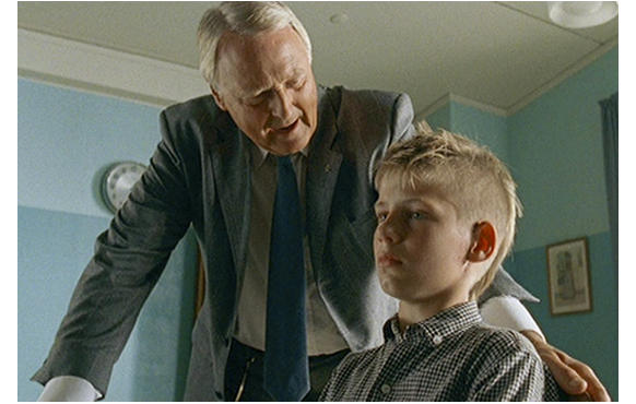 校長の仕返しは迅速だった。職員会議を開き、「わしの評価では、フリッツ・ヨハンスンには問題がある」と切り出し、最終的に「規律上の問題」という名目で「特殊学級」に移すと決めてしまう。その命令書を母親に手渡し、「こんなことは、したくないのだが」「常識が通じなくなってきたので」と言う。「常識」とは、自分を教育委員会に訴えるような行為を指している。「特殊学級」では、校長がフリッツに、つきっきりでアンデルセンの『父さんのすることは、いつもよし』を教えている。道徳教育だ。しかし、フリッツにはそんな話を聴く気は全くない。ここで、スヴェール先生がもう一度助け舟。「特殊学級」に行かせたことは、『学校法』の規定、すなわち、「特殊学級については、両親と相談せよと」という条項に違反していると教える。父はフリッツを連れて、教室会議に乗り込み、「フリッツを、直ちに元に戻せ!」と怒鳴った〔以下、連続写真〕。