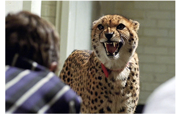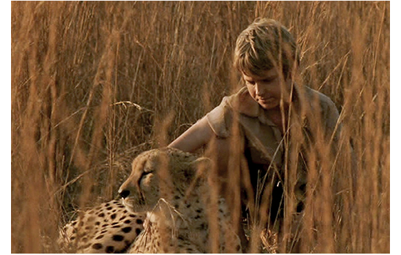 ボツワナ北部で、暗くなってから、道路上にいる一匹のネコ科の動物の赤ちゃんを発見し、急ブレーキをかける父。「きっと迷子だな」(実際には母がライオンに殺された)。「ママいる?」とザン。「いないみたいだ」。そのまま放置もできないので、車に乗せて連れていくことに。途中の食堂で、手製のほ乳瓶に溶けたアイスクリームを詰めてザンに渡す父。ザンが言う。「顔に黒い縞、何だか分かる?チーター。世界一番速い動物。0-60の加速が2秒だ。パパのポルシェよりきっと速い」。この一家はかなり裕福なのだ。父が「このまま飼うべき?」と言うと、すかさず「そう」。父は「ザン、ずっとじゃないぞ。生まれた場所に戻してやらないと」と念を押す。