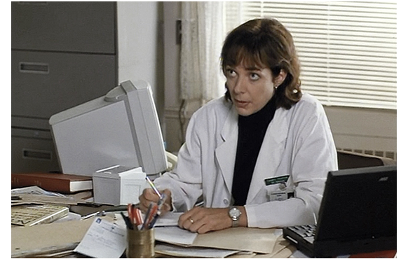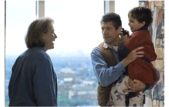 万策尽きた母は、ロビーをベッドから抱き上げ(1枚目の写真)、無許可のまま、こっそり病院から連れ出そうする。しかし、詰め所の医師に疑われて失敗。ロビーに同情している看護婦マーシャから、「彼が止めなかったら、どうなってたか知ってるの?」と言われ、「飛行機に乗ってたわ」とプリプリして答える。そこで、マーシャは、子供が病院から消えれば、警察に広域手配が回り、発見されれば逮捕、そして、誘拐と、子供を危険にさらしたかどで告発され、親権を失いかねなかったと指摘する。これは、子供をないがしろにする両親に代わり、病院が後見人となる制度なので、ロビーはアバサックの思い通りに切り刻まれてしまうところだった。母は、ロビーをないがしろにし、傷付けているのは病院の方で、そんな姿を黙って見てはいられないと訴える(2枚目の写真)。マーシャは、アバサックが開いたスタッフ・ミーティングの内容をこっそり母に教えてやる。そこでは、アバサックは、母のことを、「理性を失い 正常な判断ができない」人間とみなしていた。何という驕慢! マーシャは、アバサックと会うとまずいので、家に帰るよう勧める。