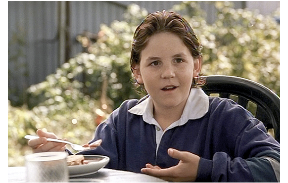 1ヶ月後、父が帰宅すると、家の入口は「フォークロージャー」の貼紙があった。家の中ででは、入院できないロビーが母とベッドで寝ている(1枚目の写真)。次のシーン、母が、新しい薬をロビーに飲ませている。ダイランチンに加え、カルバマゼピン(製品名:テグレトール)とバルプロ酸(製品名:デパケン)の3薬併用だ。前者は、1957年に合成された抗癲癇薬で、作用機序はダイランチンと似ていて、Na+イオンの細胞への流入を遮断するもの。副作用は、眠気、運動失調、倦怠感や脱力感、瞬間的な複視(かすみ目)、めまいや立ちくらみ、頭痛・頭重、食欲低下や吐き気・胃痛などの消化器症状。後者は、1975年から発売されている抗癲癇薬で、作用機序はフェノバルビタールと似ていて、Cl-イオンの流入を不活性化する酵素GABAトランスアミナーゼを阻害するもの。特異な匂いがある他(ロビーが飲むのを嫌がる、2枚目の写真)、副作用は、疲労感・振戦・鎮静と胃腸障害(これも、ロビーが嫌がっている)。マークは、朝起きてくるなり、父に「フォークロージャーって何?」と訊く。「家を取り上げられる」。「なんで 家を取られるのさ? 僕らの家だろ?」。「ローンを払ってればな」。姉が、「してないの?」と訊く。「やれる限りはな。だが、まず医療費を払わんと。というか、給料から引かれちまう」。非常に厳しい保険制度だ。その間にも、ロビーは癲癇の小発作を起こす。それを見ているマークの表情が何とも言えない(3枚目の写真)。銀行は、事情を勘案して、ローンの返済をある程度猶予してくれることになった。