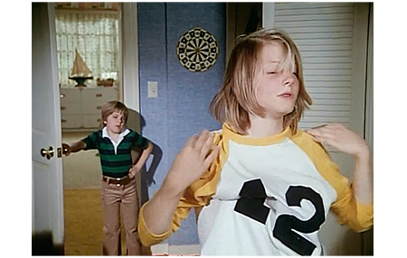 目覚まし時計が7時29分を指し、主人公のアナベル・アンドリュースの自己紹介が始まる。「ここは私の部屋。こんなやり方が好きなの。いちいち探さなくていいでしょ」。部屋中に、物が散乱している。「これが私」。ジョディ・フォスターが映る。「13年前、マウントヴュー病院で生まれた。女性。生まれつきの金髪。青い目。身長5フィート2インチ〔157センチ〕。体重は忘れたけど、一応チェックしてる」。そして、歯にはめた矯正用のブラケットを見せる。「小さな弟がいるわ。ほら見て。きれいな髪、きれいな歯、きれいな目、きれいな睫(まつげ)」(1枚目の写真)「きちんとしてるでしょ。しすぎちゃいないけど、十分なほどしてる。それも、私に見せつけるため。“品行方正ないい子ちゃんだよ” って。気味悪る~。名前はベンだけど…」。ここで、アナベルの部屋のドアが、ノックなしに開き、ベンが顔を見せる。アナベルは、「サル顔って呼んでる」と言うなり(2枚目の写真)、振り向くと、ベンに「出てって。だいたい、ノックぐらいできないの?」と噛みつく。この紹介の後、アナベルと母が入れ替わったり、様々なことが起きるが、53分間ベンの登場場面はない。