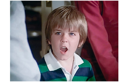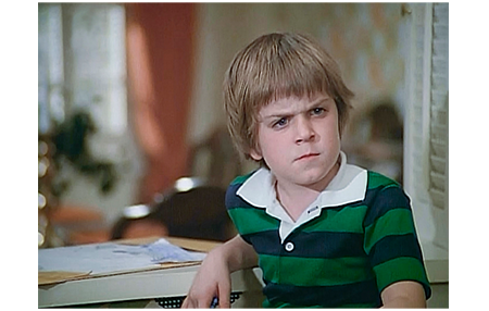 映画開始後57分後のシーン。学校に弟を迎えに行った元アナベル〔今は母の体に入っている〕。13歳では運転できないので、歩いて買い物に行き、学校にも荷物を抱えたまま歩いて行く。元アナベルは、家で大混乱に巻き込まれる。取っ掛かりは、いつもお手伝いに来ている酔っぱらいの老婆シュマウスを混乱に乗じてクビにしたこと。それを聞いたベンは大喜び。元アナベルが「あんた、好きじゃなかったの?」と訊くと、ベンは「あいつが、好き? ママ、大嫌いだったよ。文句は多いし、酒臭いし。だけど、一番の理由は、お姉ちゃんのことを わがまま娘〔spoiled brat〕とかブタ呼ばわりするのが許せないんだ」と答える(1枚目の写真)。その返事は、弟を嫌っている元アナベルにとって意外だった。「それって筋が通ってる? あんたは、シュマウスさんがアナベルを嫌ってるから彼女が嫌い。でも、アナベルはあんたが嫌い。なら、あんたはアナベルを嫌ってもいいのよ」。「だよね。でも、やってみたけど、できないんだ」(2枚目の写真)。「どうして?」。「一つ例をあげると、お姉ちゃんはアイディアの宝庫。たとえば、風船に水を一杯入れて窓から放り投げた時。あれは、サイコーだった」。「他にもママに聞かせてくれる」。しかし、ベンは友達を見つけたので、遊びに行ってしまう。元アナベルは、「思ってたより、ひねて〔finky〕ないのね」とベンを見直す。