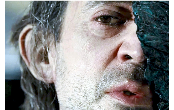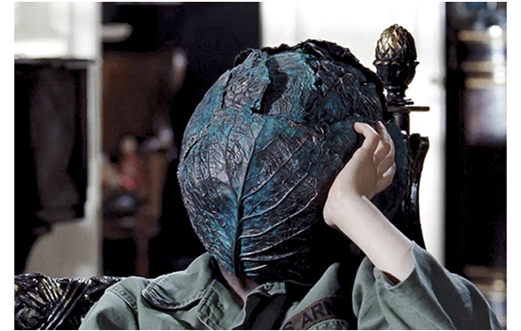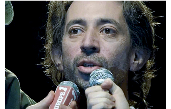 ゲンスブールの大人時代、ケイシー・モテ・クランは3回顔を出す。うち、途中の2回は瞬間的であまり意味がない。しかし、1979年、ジャマイカで、フランス国歌「ラ・マルセイエーズ」をレゲエ風に歌って愛国主義者のから罵声を浴びせられ、その場で「ラ・マルセイエーズ」を正調で歌って仲直りしたという逸話の最中からケイシーは登場する。「ラ・マルセイエーズ」を歌い終えて喝采をあびるゲンスブール(1枚目の写真)。そして、その直後に現れる同じ構図のリュシヤンがそれだ(2枚目の写真)。このシーンに続いて、ナレーションが入る。声はゲンスブールだが、内容は第三者的だ。「『ラ・マルセイエーズ』のパロディをリリースし、ゲンスブールは大成功…(3・4枚目の写真)。ゲンスブールを見ると(5枚目の写真)、私は、彼の個性と作品がつくり出す、排気管の悪臭のような公害と戦うエコロジストに共鳴したくなる(6枚目の写真)。彼の忌まわしい虚構の最も微妙な点は、反ユダヤ主義だ。喧伝だけでなく煽動する者がいる現実があるが(7枚目の写真)、それを煽るのはセルジュ・ゲンスブール自身、それも金儲けのためだ」。このシーンの意味が分からない。なぜ、少年のリュシヤンが、キャベツ頭になるのか? キャベツ頭は、1976年にリリースされた「L'Homme à tête de chou(キャベツ頭の男)」のことで、映画の中では、ゲンスブールが「第二の自我」に向かって「俺はキャベツ頭だ。半分が人間、半分が野菜」というシーンが、確かに少し前にある。しかし、なぜ、リュシヤンの顔が徐々にキャベツの葉で覆われていき、完全にキャベツ頭になり、葉が再び破れるとセルジュ・ゲンスブールになるのか? 少年時代のリュシヤンは、反ユダヤ主義の強い洗礼を受け、精神的に打ちのめされ、強く反発した。それは正当な行為だが、大人になってからのゲンスブールはそれを利用して金儲けに走った。その行動への批判が、リュシヤンがキャベツ頭になっていく過程で表現されていたのかもしれない。そして、セルジュがその殻を自らの意思で破ったことは、何らかの反省と変身を意味するものなのかもしれない。監督にとってゲンスブールは英雄なのだから。なお、レゲエ風に「ラ・マルセイエーズ」を歌うシーンでも、本来なら国歌の1番、6番、7番を歌うべきだが、日本版では6番がカットされている。