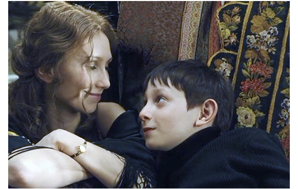 父がいなくなると、リュシヤンはイスにもたれてマンガ雑誌を見ている。そこに母がやってきたので、母にもたれかかって甘える。母が「読んでて面白い?」と訊く。「カウボーイだよ」とリュシヤン。「ママ…」(1枚目の写真)。「カウボーイみたいに拳銃が欲しい」。「バカ言わないの」。「本物じゃない、オモチャだよ」。「ダメ。戦争は遊びじゃない。ピアノを弾きなさい」。「拳銃が欲しい」。「ヒットラーの兵隊がいっぱいいるのに、拳銃が欲しい?」。「ヒットラーと話をすり替えるなんてズルイよ。拳銃買ってくれたら、ピアノ弾くから」(2枚目の写真)。「ダメ」。このシーンすべてが、日本発売のDVDには入っていない。