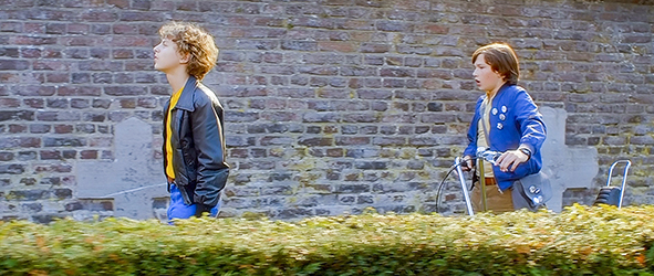 翌日、学校で。算数のテストが返される。先日バートが祈った通り、バートは最高点をもらった。そして、「どうやったのかは知らんが、君には守護天使がついてるな」と教師に言われる(1枚目の写真)。教室のドアが開き、ピーターが姿を見せる。「ああ君か、入りなさい」。ピーターが教室に入ると、一番後ろに座っていたハーマンが、「あいつの母さん 他の男とヤッたんだ。だから、ここに越して来たんだってさ。ママが言ってた」とウィリーに囁く。教師は、「みんな、新しいクラスメイトだ。ピーター・フェハイユ君。アントウェルペンから来た」と紹介し、「ピーター、何か言いたいことは?」と訊く。「何も」。このぶっきらぼうさに、生徒たちは笑う。「座りたい場所はあるかい?」。ピーターは、バートの隣のフロスを指差して、「あそこがいい」と言うが、フロスは「僕がいる」と反対。教師は、「ウィリーの隣はどうだ? 緑の服の子だ」と言うが、ピーターは、「好きな場所が選べるって言ったよね」と ごり押し。フロスは後ろに下がらされ、ピーターはバートの隣に座る。フロスは、ピーターに、「売春婦の息子って、どう呼ぶか知ってるか?」と、嫌味を言うが、ピーターに顔を殴られ、「あと一言でも言ったら、殺してやる」と脅される。そんなピーターを見ていたバートは、「何を見てる?」と言われ(2枚目の写真)、あわてて前を見る。学校が終り、歩いて帰るピーターに、自転車を押しながら歩くバートが声をかける。「君か病気の姉さんに、何かできることがあれば、言ってくれていいよ」(3枚目の写真)。「金は持ってるか?」。