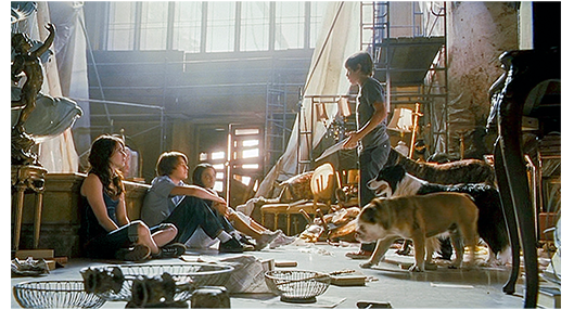 犬の出てくる映画は好きでも嫌いでもないので、所有する数はあまり多くない。その中で、この作品は、CGでなく本物の犬を多数使ったファミリー向け映画としては 飛び抜けて大掛りで、群を抜いて突拍子がない。製作費35万ドル(当時の相場で33億円)は、「大作を売りにしていない」映画としてはかなり高額だし、世界興行収入も117万ドルとかなりの黒字になっている(結構、人気があった)。犬の出場割合は非常に高く、昔よくあった「少年と犬」の映画のように、主役は少年で、犬は添え物ではなく、犬が主役になっていて、出演時間も一番長い。そういう意味でも、不思議な映画だ。矛盾点はいくらでもあるが、単なる娯楽として観るならば、嫌な思いをすることは一切なく、最後まで安心して楽しめる。主役の姉弟の姉を演じるのはエマ・ロバーツ。子役から始め、今でも現役バリバリの若手女優。演技派とは言えないが… 弟になるのが、『The Perfect Game(ザ・パーフェクト・ゲーム)』で、リトルリーグの伝説の投手アンヘルを演じたジェイク・T・オースティン。野球映画でメキシコ人らしさをたっぷり見せられた後、この映画を観ると、2人が姉弟という設定には違和感を覚えてしまうが、ずっと以前にこの映画のDVDを買って観た時は、何とも思わなかった(典型的なアメリカ人に見えた)。先入観は怖い。ジェイクは主役の一人だが、メインは姉に傾いていて、弟の出番は残念ながら多くはない。むしろ、この映画を引き締めているのは、ソーシャルワーカー役のドン・チードルの存在かもしれない。