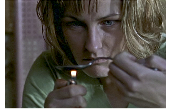 ネイサンが家に戻る途中、隣の主婦に「あんたのママ、昨夜も大騒ぎ」と言われ、「ごめんなさい、ロスさん」。「あんたが 謝ることじゃ」。「今日が、誕生日なんです」。「昼食が なかったら、ウチに いらっしゃい」。いい子なので、同情されているのだ。家に帰ると、ドアは開けっ放し。自分の部屋には、見知らぬ女性が麻薬を吸って倒れている。ママに、「僕の部屋から、追い出してよ」と言っても「テディ・ベアだと思って」。ひどい母だ。「お願い」との言葉に、目をぎらつかせて「手に入れた?」。仕方なく、もらった麻薬を渡す。「頼ってばかりね」「冷蔵庫に、ケーキが」と母。ネイサンが、「なぜ、吸わないの?」と訊くと、「口は 出さないの」。仕方ないので冷蔵庫を見に行くと、ケーキの切れ端が残っている。ネイサンは、食べ残しのケーキのかけらにろうそくを4本立て、火を点けて、吹き消すのだった。侘しい14才の誕生日だ。その時、母は麻薬をスプーンに入れてライターで加熱、それを直接静脈に注射するという愚かな行為に。結局、麻薬の過剰摂取で死亡する。