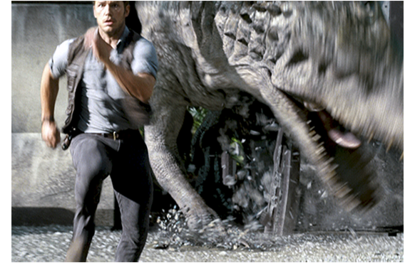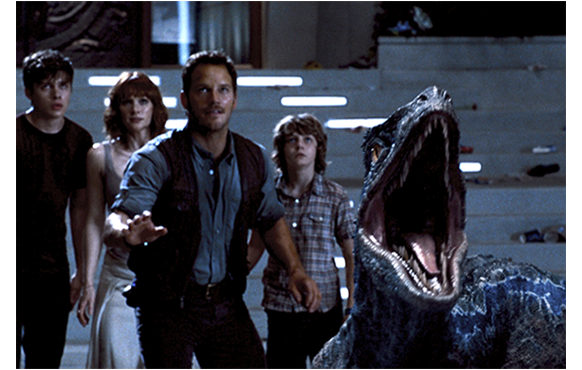 映画の舞台は、1作目と同じヌブラル島(2・3作目はソルナ島)。前3作と違い、テーマパークとして既に開業して久しく、離島であるにもかかわらず一日2万人以上の入場者を誇る人気パークだ。ただ、集客能力を維持するため、それまでのような毀損したDNAの修復だけではなく、種を超えた遺伝子操作により、人工的に強大な恐竜を作り出してしまったことが落とし穴になり、大惨事が発生するというストーリーになっている。たまたま、その時に居合わせたのは、タイ演じるグレイと、その兄ザックの兄弟。たまたま叔母クレアがパークの運営責任者だったこともあり、離婚寸前の両親が最後の兄弟旅行にと送り出したのであろう。2人がちょうどジャイロスフィアという “2人用のサファリ見物カー” に乗って恐竜の放し飼いエリアに入った時に、非公開で飼育中の強大な恐竜インドミナスが逃げ出す。そして、避難指示に従わなかった2人のジャイロスフィアに襲いかかる。2人は奇跡的に逃げ出して、自力でビジターセンターまで戻るが、そこにインドミナスによって破壊された鳥類園から逃げ出した大量の翼竜が襲来し、一難去ってまた一難となる。最後には、インドミナス、ラプトル、ティラノサウルスの三つ巴の闘いもある。