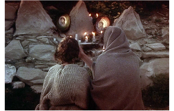 8才程度に育ったわが子を連れて島に渡ったイシドール。少年は不具者のように見える。「ほら、父さんだよ」。石を積んで作られた祭壇の上には、「永遠の少年」の写真が飾られている。このシーンの直後、母は、息子が足で蹴り落とした石で殺されてしまう。…とこう説明してきても、何かすっきりしない。要は、スペインのシュールレアリズムの巨匠ダリの絵を見るようなつもりで、おどろおどろしい、意味不明の映像に見とれていればいいのだ。理屈抜きで。