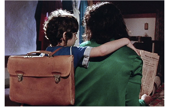 次に重要なのは、イシドールは部屋で養父に新聞を読むシーン。「恐ろしくショッキングな犯罪が、サン・セバスチャンの町を震撼させた」という記事だ。夫婦、夫の兄の退役大佐、祖母、4才の双子の娘と13才の娘が切り刻まれて殺され、10才の少年が行方不明だという。少年が、犯人に誘拐されたのかどうかは不明だ。イシドールが読んでいると、また洋服の隙間から少年が現われる。そして、いきなり横に座る。肩に腕をやり、「僕のフィアンセ」と囁く。その後突然、「覚えてないんだ。ぜんぜん」。「どうして、こんなことを?」。「分からない。知らないんだ」。ここで少年の斜めのアップの顔。目が特殊レンズで星型に光る。イシドール:「ひょっとして、嫌いだったの?」。少年:「そう思う?」。「憎んでたのよ。殴られたから。ううん、無視されたから」。「そうかも」。「あなたの、黄金の心が 理解できなかったのよ」。少年は、「黄金…」と微笑む。「黄金は大好き。宝石も」と言って、フランス式ランドセルから山ほどの宝石を取り出す。その中から金のネックレスを選び、「女王だ」と言ってイシドールの首にかける。