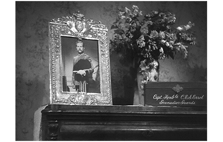web/20160520024659/http://www.colonialwargaming.co.uk/Miscellany/Army/Commissions.htm)によれば、大尉〔Captain〕の場合、その属している部隊によるが、映画では「Grenadier Guards(近衛歩兵第一連隊)」となっているので、表中央の「Foot Guards」に該当する。これだと、4,800ポンドとなる。原作の書かれた1886年頃のポンドの価値だが、年収200ポンドでメイドを1人雇い、子供を学校に行かせることができるとあるので、4,800ポンドだと24年分にあたる。イギリス貴族の年収は少なくとも1万ポンド以上なので、それに比べれば一時金での4,800ポンドは少ないが、仕事口があって、これだけのお金があれば生活には困らない〔前回 紹介したオリバー・ツイストでは、彼が最終的に相続したのは僅か3,000ポンドだった(ある訳本では「年3,000」となっていたが、明らかな間違い)。この額では、ブラウンロウ氏の養子にならなかったら、紳士の生活は送れなかったろう〕。セドリックは、母に、「だいじな人、父様は… よくなったの〔Dearest, is Father well now〕?」と尋ねる。母は、「ええ、坊や、良くなったわ、とてもね。でも、私たちは2人だけになってしまったの」と答える。「2人だけよ」。そう言うと泣きながらセドリックを抱きしめる(1枚目の写真)。その直後に、暖炉の上に置かれた元大尉の写真と、持ち物が入っていた箱が映る(2枚目の写真)。外は吹雪だ。なお、原作によれば、2人の生活は、母が孤児だったためと、夫が死んでからは仕事に就かなかったため、訪問者が誰もいない非常に静かなものだった。そして、セドリックの髪は、「柔らかくてきれいな金髪〔soft, fine, gold-colored hair〕で、自然にカールしていた」とある。フレディ・バーソロミューの髪は、白黒なので目立たないが金髪ではない〔カラー時代になってからの3作では、3人とも金髪〕。